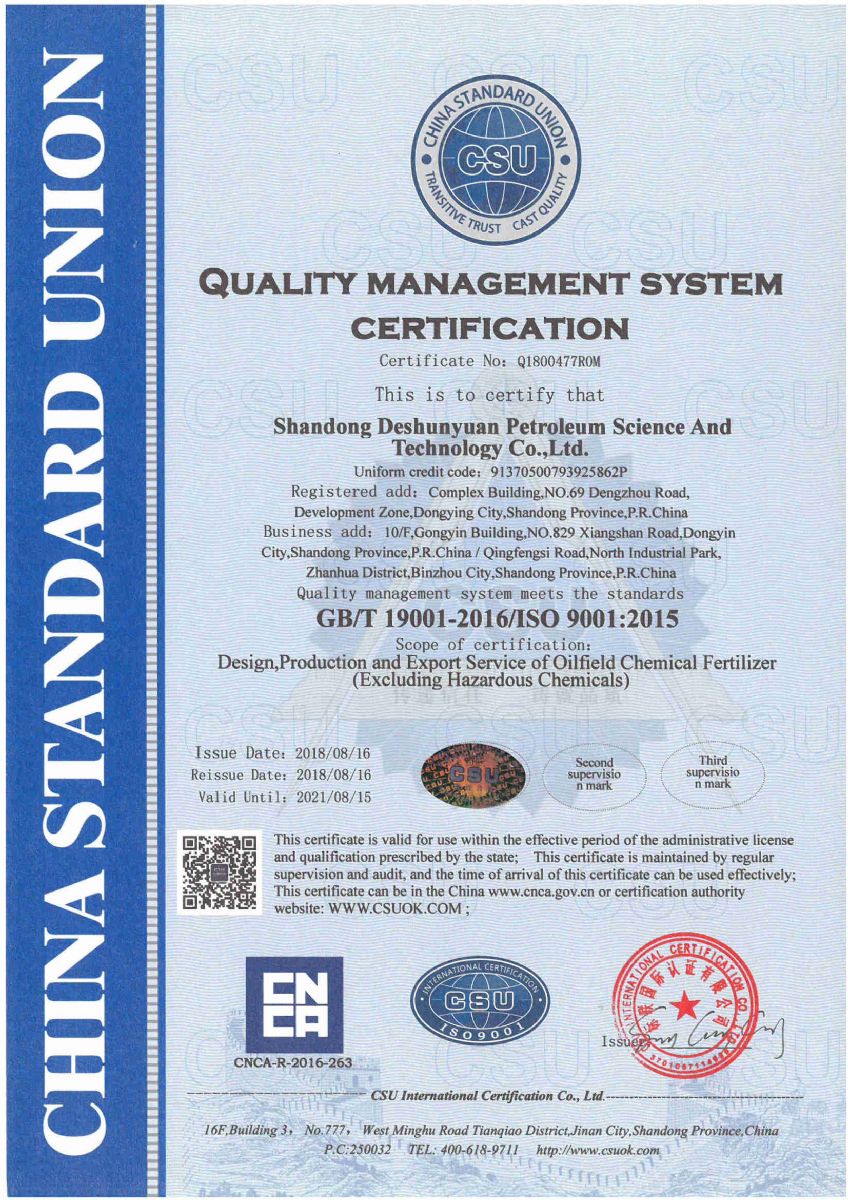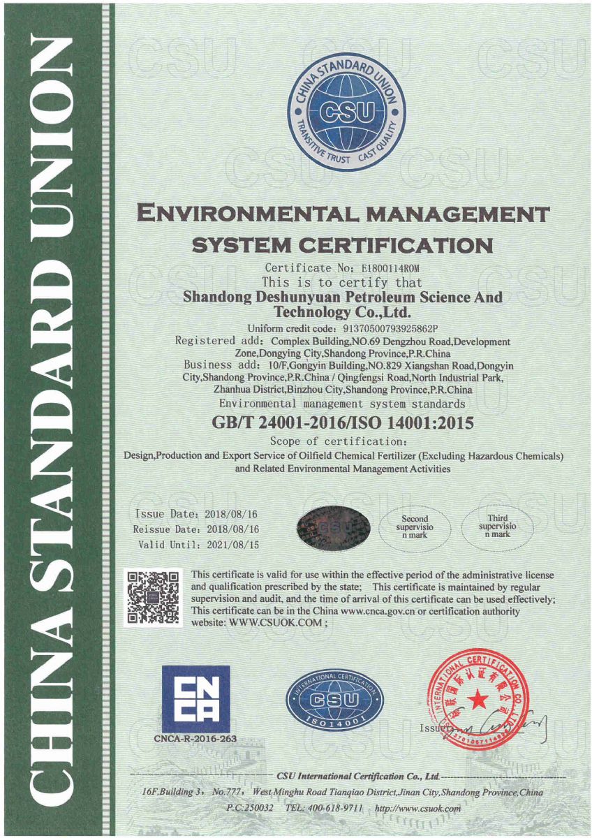 On August 19, 2019, the company is informed by China Standard International Certification Co., Ltd. that she has successfully passed the first supervision and audit of the certifications of quality management system, environmental management system and occupational health and safety management system with meeting requirements of certification standards. Thus the company will continue to maintain the certification registration qualification and the valid certificates.