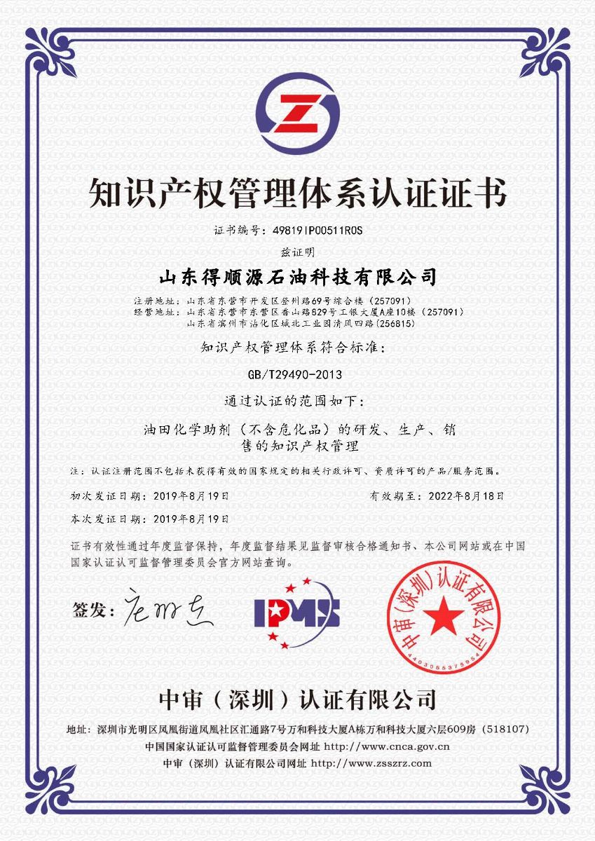 On August 20, 2019, the company successfully passed the intellectual property management system certification and obtained the certificate of Zhongshen (Shenzhen) Certification Co., Ltd.