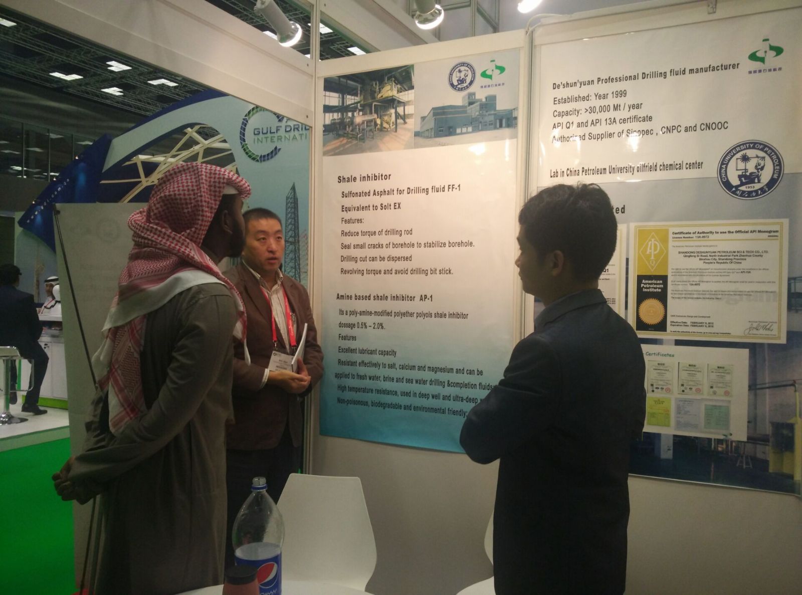 通過參加此次展會,我們同Qatar petroleum, Gulf international drilling等當(dāng)?shù)乜蛻暨M行了深入友好的交流,客戶對我公司研發(fā)的抗高溫鉆井液材料非常感興趣,希望取得樣品并有更深一步的合作。