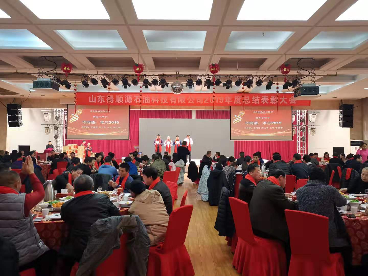 時(shí)光開(kāi)新篇,從容迎華章 。2020年1月17日下午山東得順源科技有限公司年會(huì)暨2019年度總結(jié)表彰大會(huì)在會(huì)展中心隆重舉行。宴會(huì)廳座無(wú)虛席,流光溢彩,公司員工100余人參加此次年會(huì)。